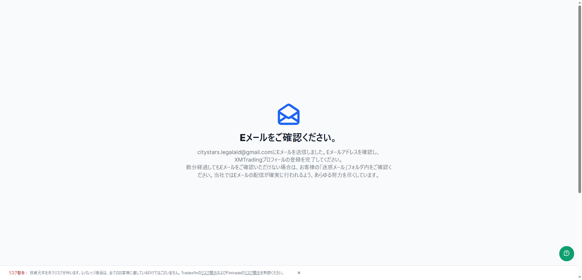 ↑こちらの画面まで進んだら、登録したメールアドレスの受信メールをご確認ください。