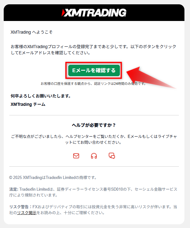 メール本文中の確認ボタンをクリック