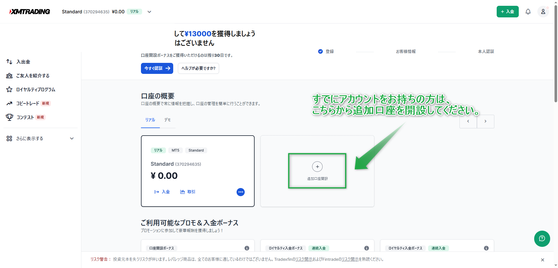 すでにXMの口座をお持ちの方でも、追加口座を作成することが可能です。