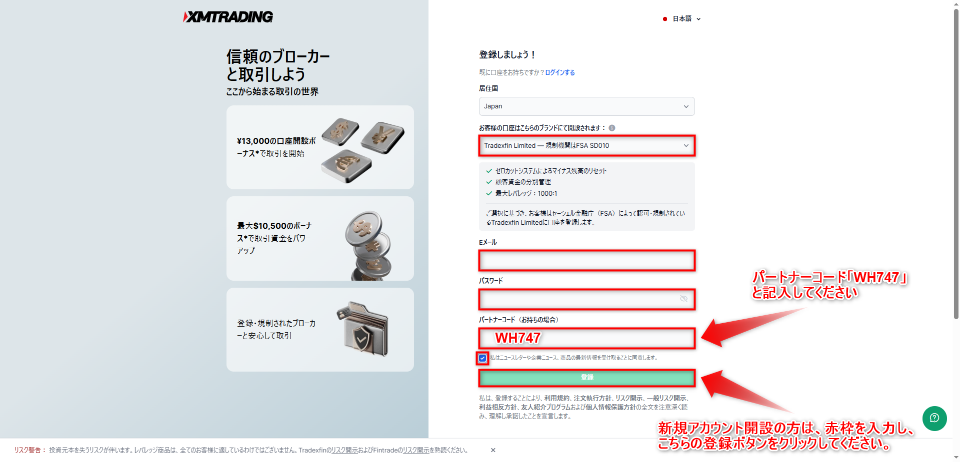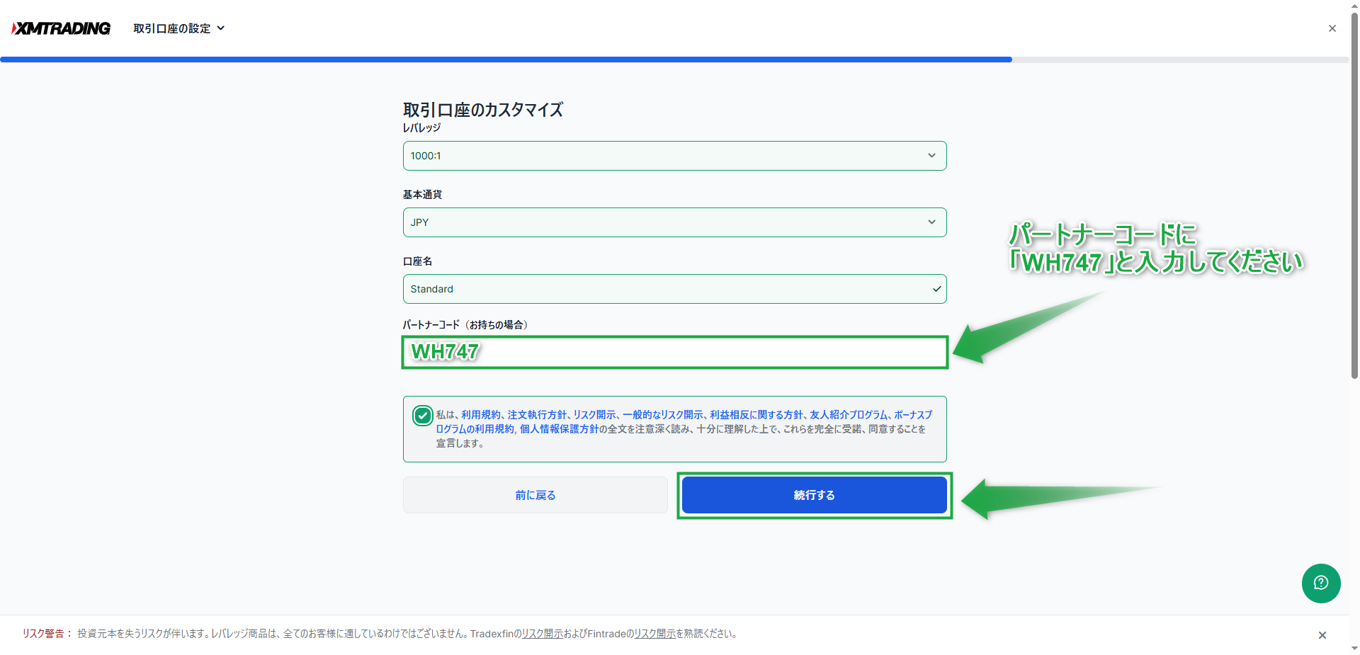 パートナーコードに「WH747」と入力してください。